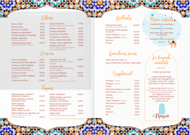La Grande Mosquée accueille dans son enceinte un restaurant de couscous, tagines, grillades, un salon de thé spacieux, proposant les meilleures spécialités salées et sucrées. Dès votre arrivée vous pourrez choisir de déguster votre repas dans un des salons confortables…